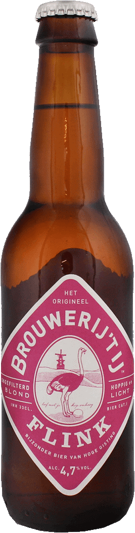 Flink is een ontzettend soepele dorstlesser. Deze frisse pale ale koppelt een bescheiden alcoholpercentage aan een sprankelende smaak. Er ging een beetje tarwemout in de mix en dat zorgt voor een aangename zachtheid. De Galaxy en Mosaic-hop die we na de vergisting nog even in de tank hangen, zorgen voor een licht fruitige, subtiel hoppige kieteling.
